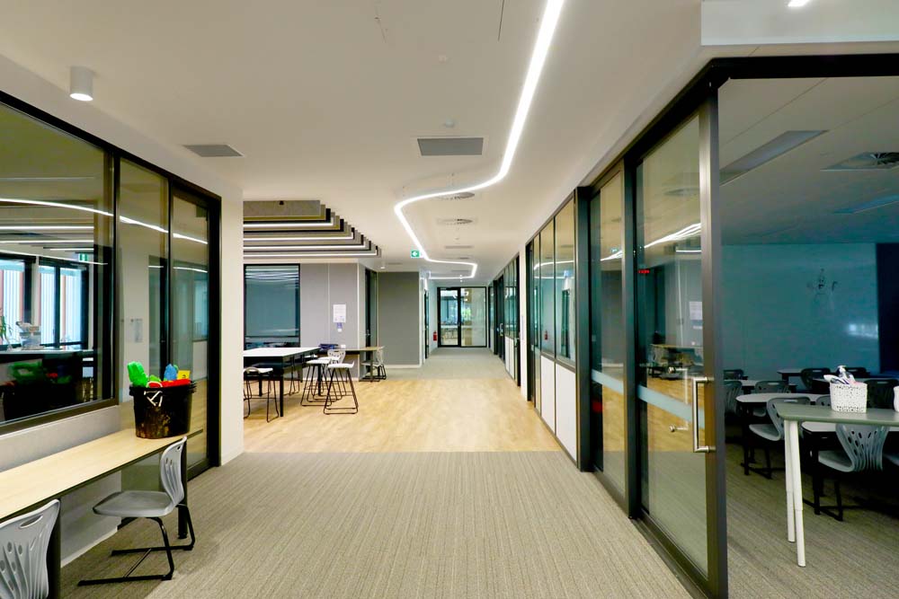Stage One of the redevelopment introduced a new building constructed across the road from the existing school campus, forming the first phase of a long-term transformation plan. Novon Lighting was proud to support this important project and looks forward to continuing involvement in future stages.